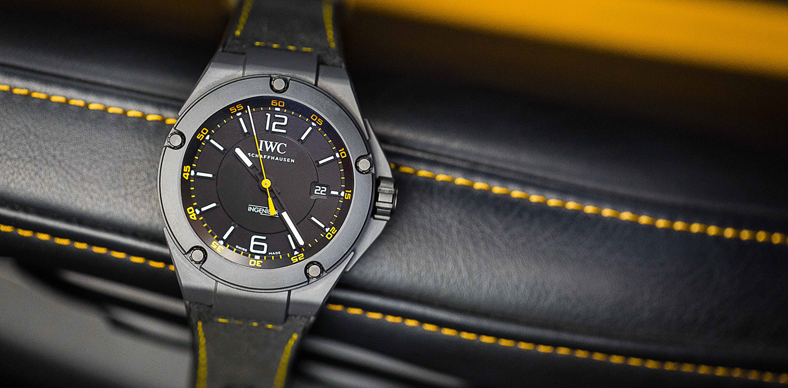Le carbure de bore est utilisé pour la lunette, carrure, le dos et les gardiens de la couronne, tandis que les vis de la lunette et la couronne sont l' oxyde de zirconium, une autre forme de céramique. Le diamètre du boîtier est de 45 mm. Accents jaunes sur le cadran et le bracelet sont calquées sur jaune SolarBeam, la peinture qui est exclusif à l'AMG GT. Le carbure de bore est tellement dur qu'il est seulement légèrement plus doux que le diamant, ce qui rend cette montre pratiquement anti-rayures. Mais comme avec tout autre matériau ultra-dur, retouche le cas une fois qu'il est rayé est possible. Scratches, en d' autres termes, sont éternels.
